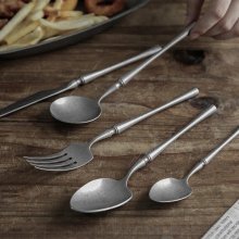 Our cutlery set stands out for its combination of durability, elegance, and practicality. The retro scrub design not only adds character to your dining table but also offers a comfortable grip and balanced weight for a seamless dining experience. Whether you’re cutting into a tender steak or twirling spaghetti, this cutlery set ensures each meal is enjoyed in style.