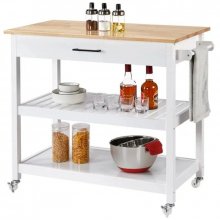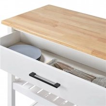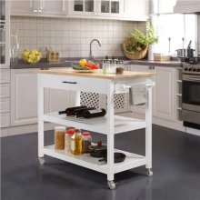 Introducing our Elegant 40″ White Kitchen Island Cart, a perfect blend of style and practicality to enhance your kitchen experience. This rolling island cart is not just a piece of furniture; it’s a versatile companion for your cooking adventures and dining pleasures. Crafted from solid rubber wood with a beautiful natural wood grain finish, this island cart promises durability and an aesthetic appeal that complements any home decor.