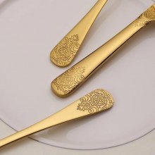 - Set Composition: Comprehensive set comprising a knife, fork, spoon, dessert fork, and coffee spoon.