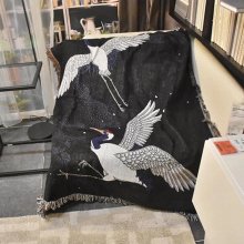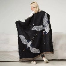 Elevate your living space with our Elegant Black Crane & Floral Japanese Knitted Cotton Blanket. Its unique design, high-quality material, and versatile use make it an essential addition to any home. Experience the perfect blend of art and comfort today.