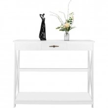 Constructed from premium P2 MDF, this table promises durability and stability. The crossed side design and additional horizontal support ensure it stands strong in your home for years to come. With its white finish, this console table not only adds elegance but also blends seamlessly with various decor styles, from modern to classic.