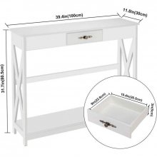 Setting up this console table is a breeze. With straightforward instructions, you can quickly assemble it and start enjoying its beauty and utility. Measuring 39.4″ W x 11.8″ D x 31.8″ H, it’s the perfect size for various spaces. The drawer dimensions (10.5″ W x 9″ D x 3″ H) and a weight capacity of 44lbs per shelf ensure practicality and convenience.
