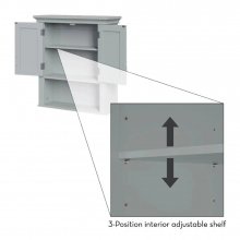 Introducing the perfect blend of functionality and style for your bathroom – our Elegant Gray 2-Door Bathroom Wall Cabinet. This beautifully designed storage solution adds a touch of sophistication to any bathroom decor while keeping your essentials organized and within reach. Its classic design, featuring inset doors and side panels along with a coved top shelf, ensures a timeless look that complements any interior.