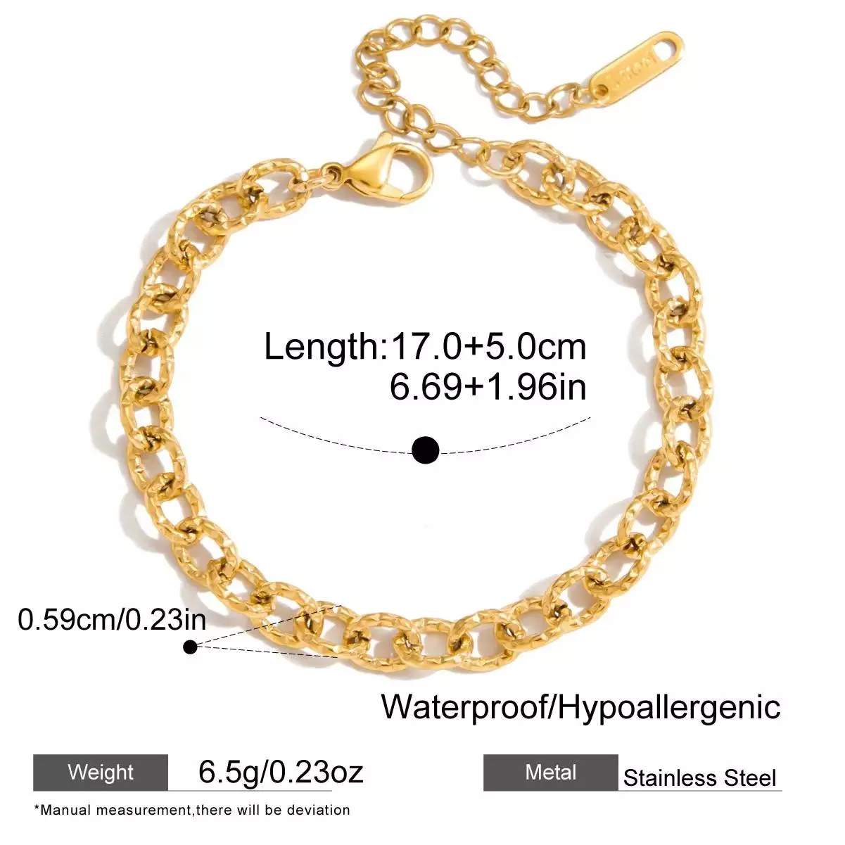 • Bracelet Type: Chain and link style with a lobster claw clasp for secure wear.