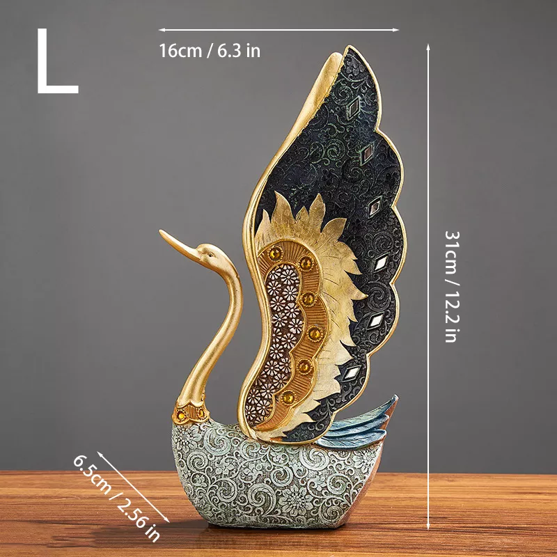 Available in two sizes—approximately 4.33 × 2.17 × 8.66 inches and 6.3 × 2.56 × 12.2 inches—these ornaments fit perfectly into small and medium décor spaces. Their sleek silhouette and artistic craftsmanship make them ideal accents for living rooms, hallways, bedrooms, or office desks. They are best used as standout pieces that bring harmony and sophistication to your home. What makes these swan ornaments special is their symbolic meaning: swans represent purity, love, and elegance, making them thoughtful gifts for loved ones or charming additions to your own home décor.