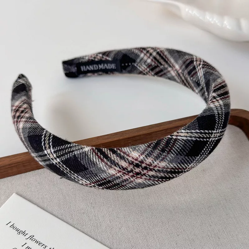 Elegant Retro Plaid Wide Headband – Korean Style Hair Accessory