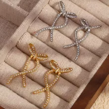 Turn heads and captivate hearts with these stunning Rhinestone Butterfly Bowknot Earrings. Crafted from premium 316L stainless steel and adorned with exquisite rhinestones, these earrings are the perfect blend of sophistication and charm. The twisted lines and delicate bowknot design evoke a timeless elegance, making them an ideal accessory for any occasion. Whether you’re dressing up for a glamorous evening or adding a touch of sparkle to your everyday look, these earrings are your go-to choice for effortless style.