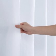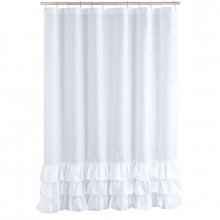 Our Ruffled White Boho Shower Curtain stands out with its premium quality and elegant design. The 100% polyester solid fabric provides a sleek look and feels, while the 12 grommets and ruffled detail add a decorative touch. The bottom is weighted with a string of spongy lead, ensuring the curtain hangs beautifully and stays in place. No need for a liner, as this curtain offers excellent water resistance. Plus, it’s easy to install with your existing shower rod and hooks (not included).