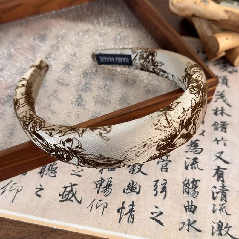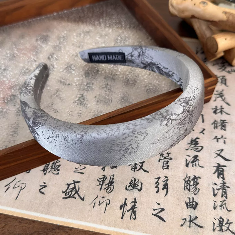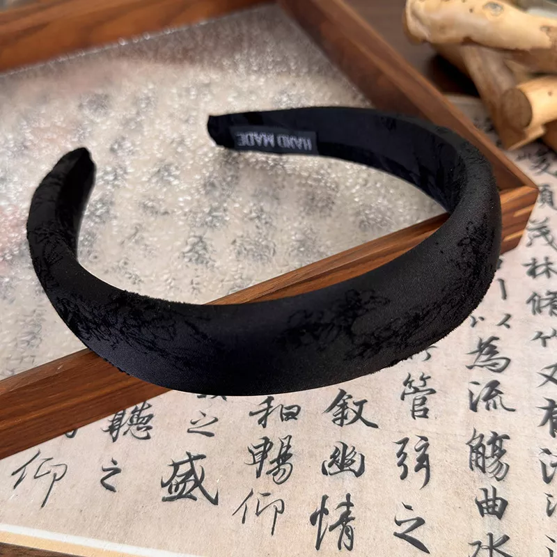 Unlike ordinary hairbands, this design stands out with its intricate embroidery and luxurious fabric combination. The smooth satin catches the light beautifully, the velvet provides depth and richness, and the printed pattern ensures your look stays modern and fresh. It’s not just a headband—it’s a style statement.