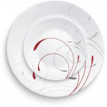 Introducing our Elegant Splendor 12-Piece Dinnerware Set, a perfect blend of classic style and modern functionality. Designed to add a touch of elegance to your daily meals and special occasions, this set is adorned with delicate plumes of soft gray and rich red. Its sleek shapes bring a timeless beauty to your dining table, making every meal a splendid experience.