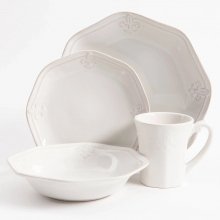 Designed for versatility, our dinnerware set shines in simplicity and functionality. The classic shapes blend seamlessly with any decor, making it a staple for your China cabinet. The set’s subtle styling, featuring an embossed fleur-de-lis pattern, complements various color schemes and adds a quaint charm to your table setting. Ideal for both everyday use and special gatherings, it’s a set that meets all your dining needs.