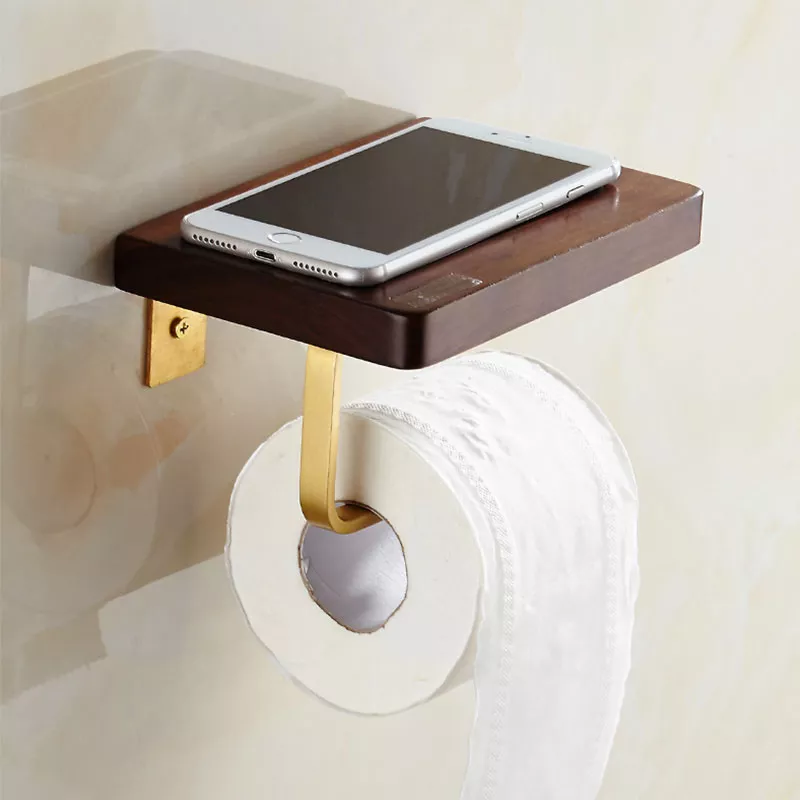 Bring elegance and practicality into your bathroom with this Wooden Walnut Toilet Paper Double Roll Holder with Shelf. Crafted with a stunning walnut wood base and premium solid brass hardware in a warm gold finish, it’s more than just a toilet paper holder — it’s a statement piece. The built-in shelf offers the perfect spot for your phone, small décor, or bathroom essentials, combining beauty and convenience in one sleek design.