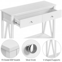 Introducing our elegant white wooden console table, a beautiful blend of style and practicality. Perfectly sized for living rooms, entryways, and hallways, this table is not just a piece of furniture but a statement of modern simplicity. Crafted from high-quality MDF and pine, it promises durability and a long-lasting presence in your home.