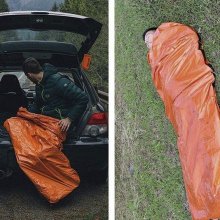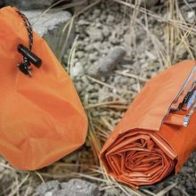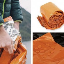 In the most dire of situations, the vivid orange color of our Emergency Sleeping Bag can act as an emergency signal to rescue crew in the air. You can use the bag to form a visible 79 x 35.5 in (L x W) signal to anyone to see. This sleeping bag is an absolute necessity for camping and outdoor adventures: it not only keeps you warm at night as a sleeping space and protected from extreme elements, but can save your life in life-rescue situations and emergencies.