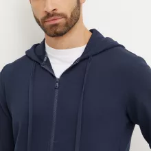 Don’t settle for less when you can have premium comfort and sleek style in one perfect piece. The Emporio Armani Men’s Navy Hooded Zip-Up Sweatshirt is the ultimate choice for modern men who appreciate quality and design. Add it to your collection now and experience the perfect blend of luxury and practicality.