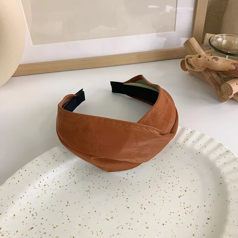Fashionable PU Leather Wide Cross Headband – Versatile Hair Accessory