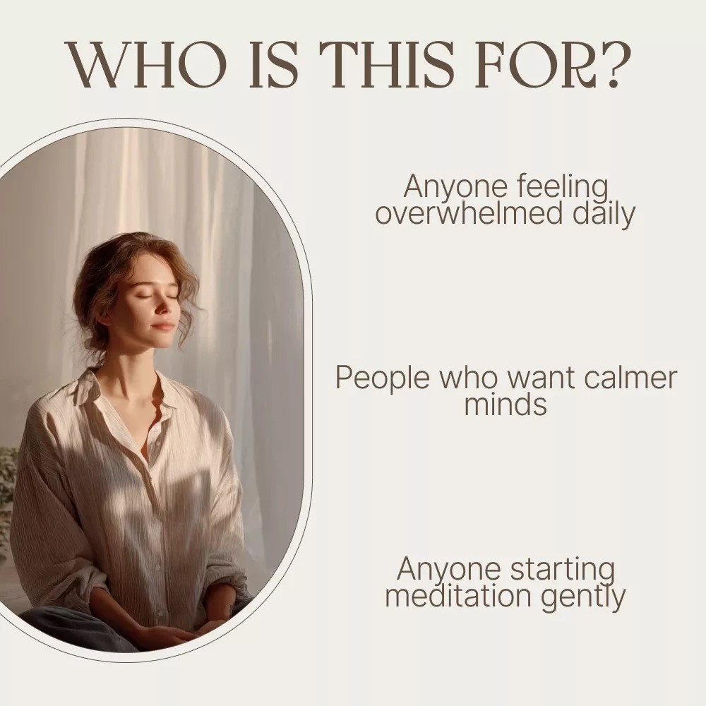 This guide is perfect for busy professionals, beginners curious about meditation, creatives feeling overwhelmed, or anyone looking for a practical approach to meditation and relaxation. If you’ve tried to relax before but felt unsure where to start—or how to stick with it—this guide was created with you in mind.