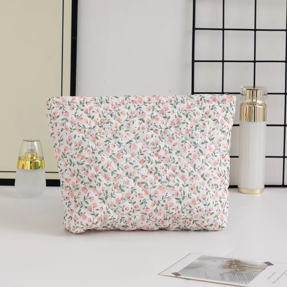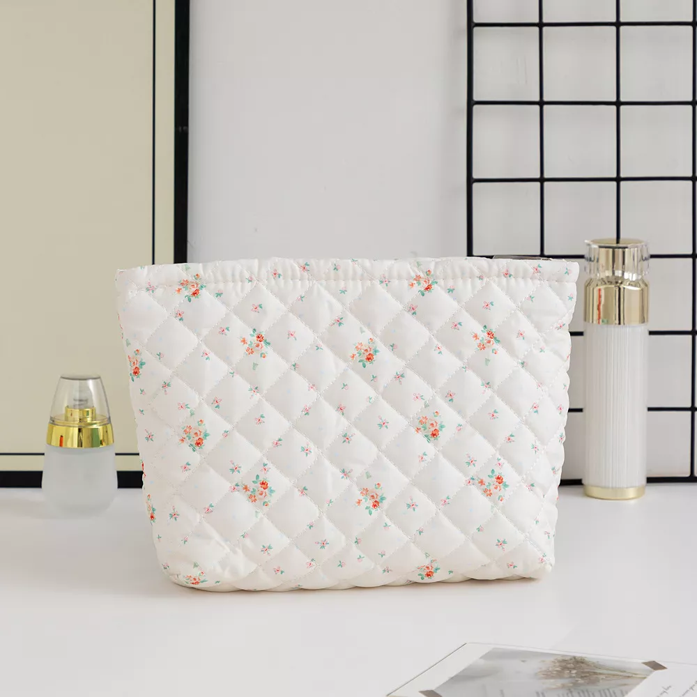 Whether you’re packing for a weekend getaway, organizing your daily beauty essentials, or keeping skincare neatly stored, this quilted floral makeup bag is your go-to solution. It’s the ideal balance of style, space, and convenience.
