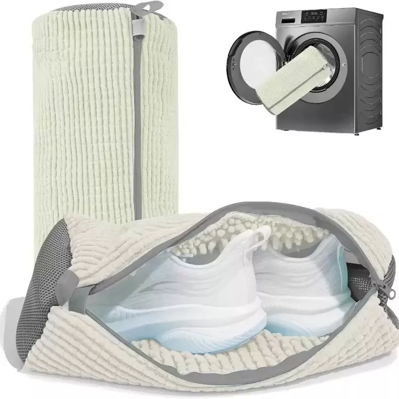 - Invisible Zipper Closure – Keeps shoes securely in place and protects the washer drum.