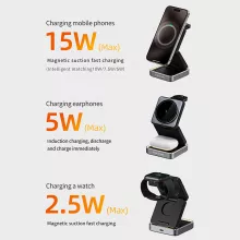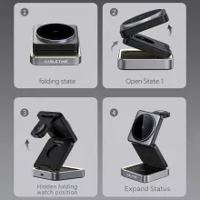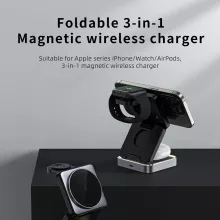 Transform the way you charge your devices with this foldable 3-in-1 magnetic wireless charging stand. Enjoy the convenience of simultaneous charging, a clutter-free setup, and sleek, modern aesthetics. Elevate your workspace or bedside and ensure your devices are always ready to go. Get yours today and experience the perfect combination of style, efficiency, and portability!