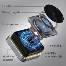 The blend of functionality and design sets this charger apart. Its foldable form factor makes it easy to carry, while the magnetic alignment ensures stress-free charging every time. The ambient night light and memory lighting feature add a touch of sophistication, making it not just a charger but an elegant addition to any space.