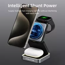Say goodbye to messy cables and tangled chargers with this foldable 3-in-1 magnetic wireless charging stand. Designed for Apple users, it offers seamless charging for your iPhone, Apple Watch, and AirPods simultaneously. Whether it’s your desk, nightstand, or while traveling, this sleek and portable charger ensures all your essential devices are powered up efficiently and neatly.
