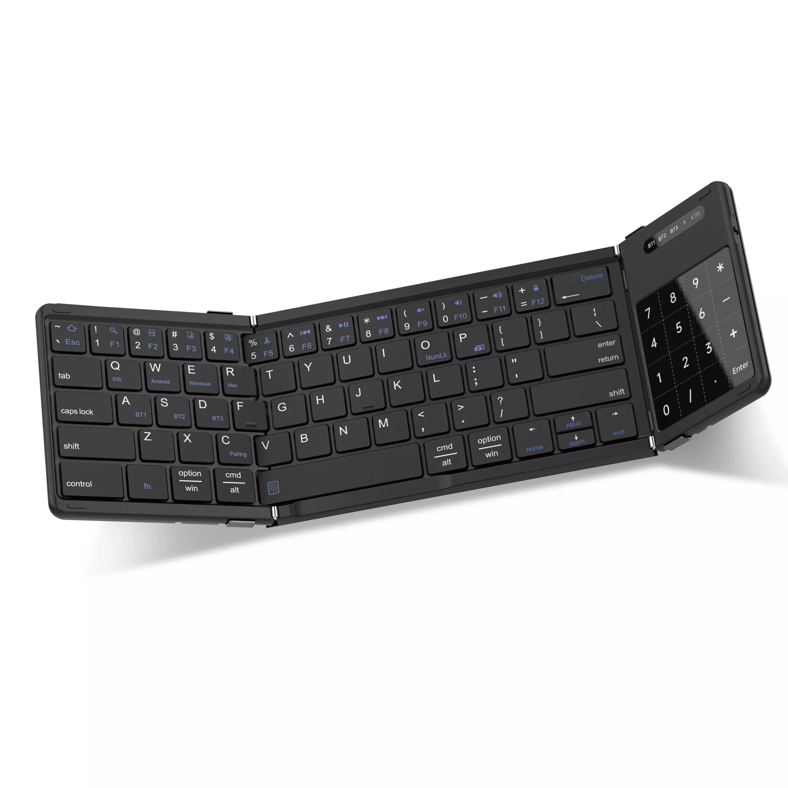 This foldable keyboard is crafted for durability, able to withstand repeated folding without damage. Its lightweight construction and compact size make it an ideal travel companion, while the integrated touchpad and numeric keypad provide versatile control for typing, navigation, and data entry.