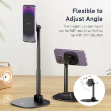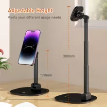 Designed specifically for iPhone 12, 13, and 14 series, its powerful magnetic mount securely holds your device in place. Need flexibility? The 360° rotatable magnetic phone mount and adjustable height make it easier than ever to customize your viewing position to match your needs.