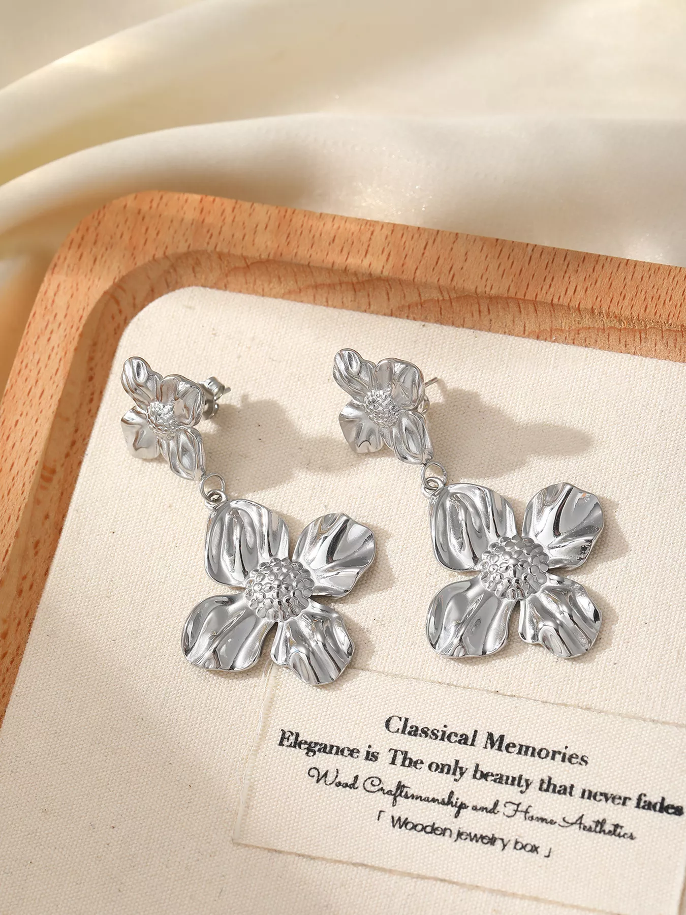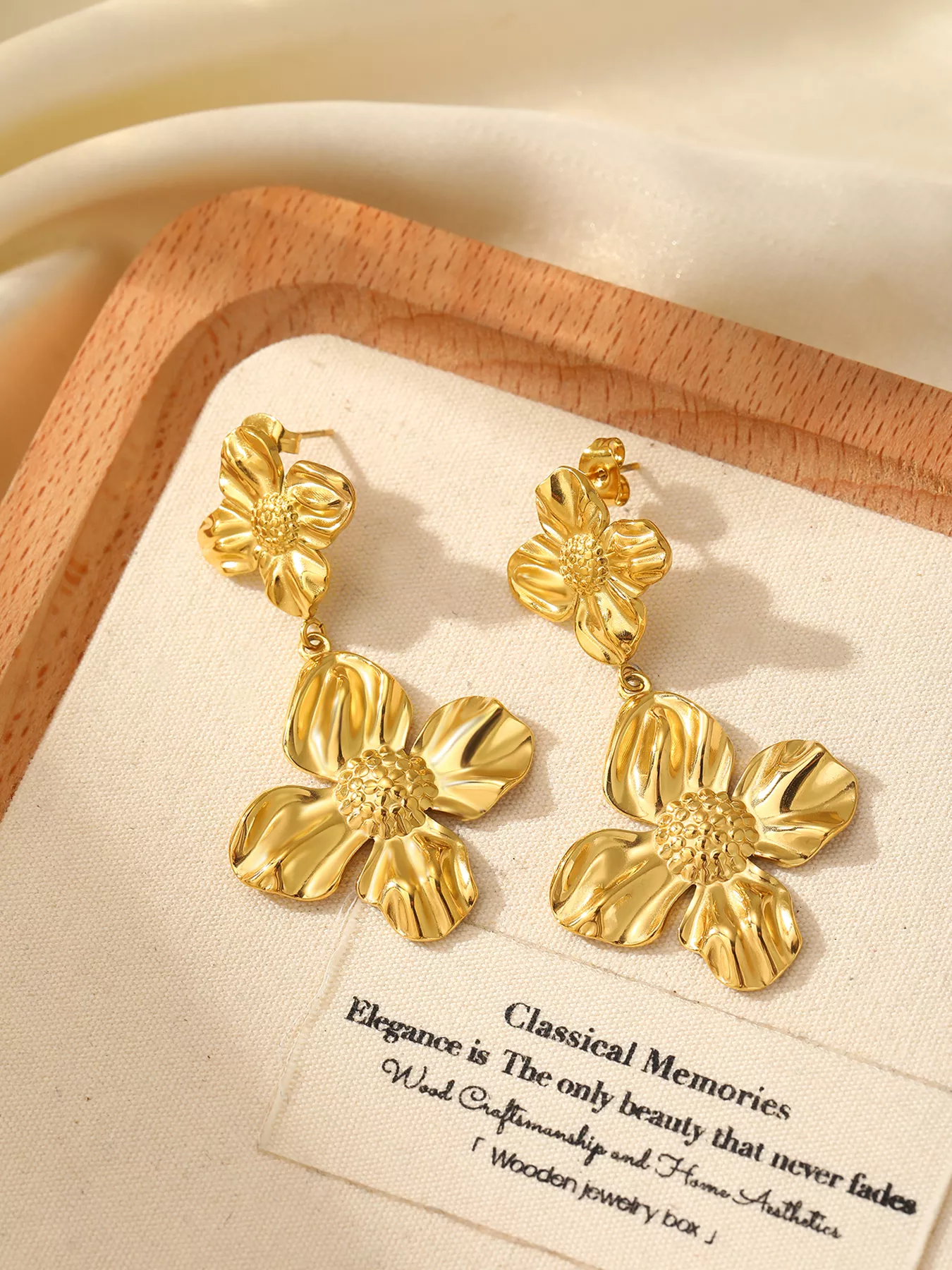 These gold-plated stainless steel floral drop earrings are more than just accessories—they are a statement of elegance and versatility. Wear them to the office to add a polished touch to your workwear, or style them for an evening out to catch the light beautifully. Their plant-inspired design brings a fresh, graceful feel that never goes out of style. Treat yourself or surprise a loved one with these timeless earrings and let their beauty elevate your every day.