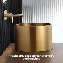 Since installing the basin in my master bathroom, each morning feels like waking up in a luxury hotel. This isn't just any basin; it's a centerpiece that has elevated my entire bathroom's aesthetic. Crafted from the finest stainless steel, its durability is evident, resisting the daily wear and tear with grace. The sleek round design harmonizes beautifully with my bathroom decor, offering a modern yet timeless elegance. The installation process was surprisingly straightforward, thanks to the single-hole faucet mount design, making it an effortless upgrade. With a generous 9L capacity, it perfectly balances form and function, making daily routines feel like moments of luxury. Its shimmering gold finish adds a warm, inviting glow, transforming every act of washing up into a serene ritual. This basin is more than a fixture; it's an enhancement to my daily refreshment and relaxation, turning ordinary moments into experiences of pure indulgence.