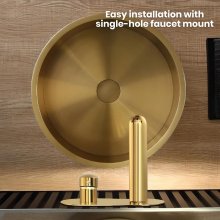 Integrating the basin into my stylish home bar area has been a game-changer. Designed with discerning homeowners in mind, this basin goes beyond mere functionality; it's a symbol of luxury and efficiency. The high-quality stainless steel ensures longevity, while its round shape and gold finish add an element of sophistication to the space. The convenience of its single-hole faucet mount made installation a breeze, transforming my home bar into a statement of elegance. The basin's generous capacity and practical design cater to every need, from washing glassware to quick clean-ups, making hosting an effortless affair. This basin is not just a part of my home; it's a reflection of my commitment to elegance and practicality, enhancing the ambiance of social gatherings and making every moment spent at the bar a luxurious experience.