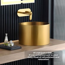 Best utilized in the settings of a luxurious hotel, a chic villa, or a stylish home bar, this gold countertop sink serves as both a functional fixture and a piece of art. Its round elegance is perfect for those moments of self-care, elevating the simple act of washing up into a serene experience. Whether it’s for a quick hand wash or a leisurely hair shampoo, this basin stands ready to cater to your every need.