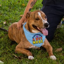Bright design and high-quality materials are what distinguish Happiness Is a Wet Nose Pet Bandana. We guarantee that the fabric will not fade or stretch, and your pet will be able to wear this bandana for many years.
