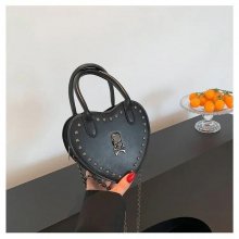 Step into a world where fashion meets rebellion with our Heart-Shaped Y2K Punk Skull Crossbody Bag. Crafted for those who dare to stand out, this bag blends the essence of gothic charm with hip-hop vibes, making it a perfect accessory for any statement-maker. With its unique heart shape, exquisite skull applique, and bold rivet detailing, this bag is not just an accessory but a declaration of style.