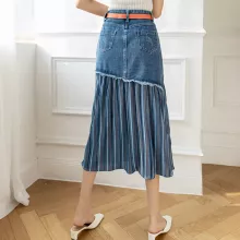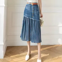 The beauty of this skirt lies in its unique patchwork pattern and meticulously pleated denim, which combine to create a look that’s both sophisticated and casual. Whether you’re meeting friends for brunch or heading out for a day in the city, this skirt’s mid-calf length and slim-fit silhouette provide a flattering shape for all body types, from S to 5XL. Plus, the slight stretch in the fabric offers comfort without compromising on style.