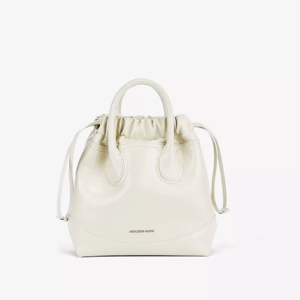This bag stands out with its unique wrinkled cowhide texture and luxurious glossy finish. The silver-tone chain provides a contemporary edge, while the drawstring bucket design adds a touch of playful sophistication. It’s a versatile accessory that combines function with high fashion, ensuring you always make a stylish impression.