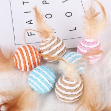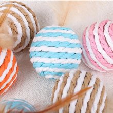 Introduce your cat to a world of excitement and activity with our Interactive Sisal and Feather Cat Toy. Designed to stimulate your cat’s natural hunting instincts, this toy combines the thrill of the chase with the joy of interactive play. The striped sisal ball, adorned with enticing feathers, is perfect for batting, biting, and chasing, providing endless fun for your furry companion.