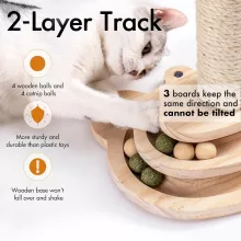 Perfect for cats of all ages, this multifunctional toy offers endless entertainment while fulfilling your cat’s natural need to scratch and play. The 2-layer track keeps your cat engaged with moving balls, while the sisal post and feather toy encourage climbing, swatting, and healthy exercise. Its durable wooden design ensures longevity and stability, making it a practical and stylish addition to your home.