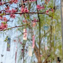Each wind chime is meticulously crafted from high-quality glass, adorned with intricate cherry blossom patterns. The transparent glass creates a mesmerizing light play, while the paper labels beneath each chime add a touch of whimsy and personalization. The durable hanging rope ensures easy installation, allowing you to bring a touch of Japanese elegance to any corner of your home or garden.