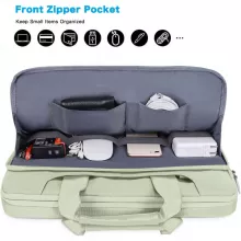 - Ample Storage Space: Includes a large front pocket and multiple inner compartments for accessories like chargers, phones, and cables.