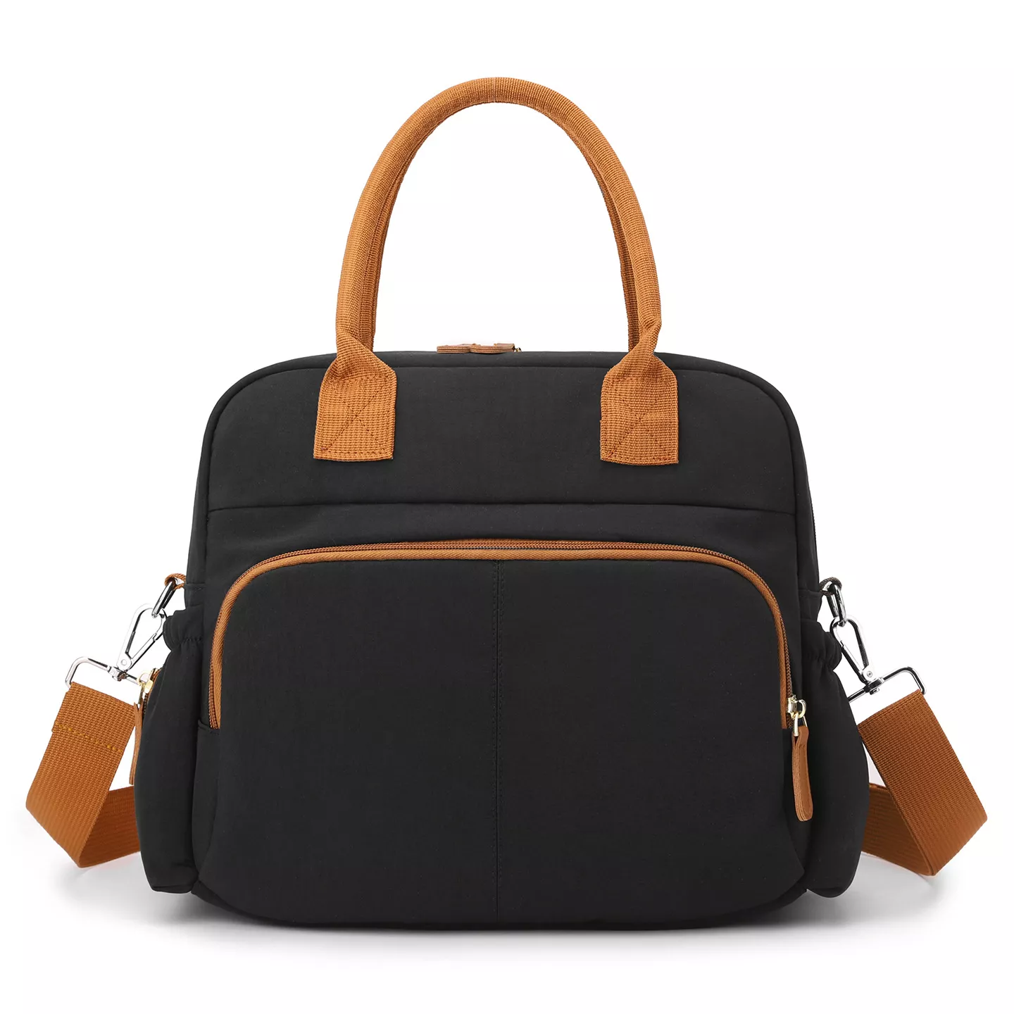 Built with thoughtful details, this multifunction bag includes multiple interior and exterior pockets so you can separate diapers, bottles, wipes, toys, clothing, and personal items. The secure zipper closure keeps everything contained, while soft, comfortable straps make carrying effortless. At approximately backpack size with a spacious interior, it offers more than enough room without feeling bulky. Its versatile messenger-style design lets you wear it however feels best.