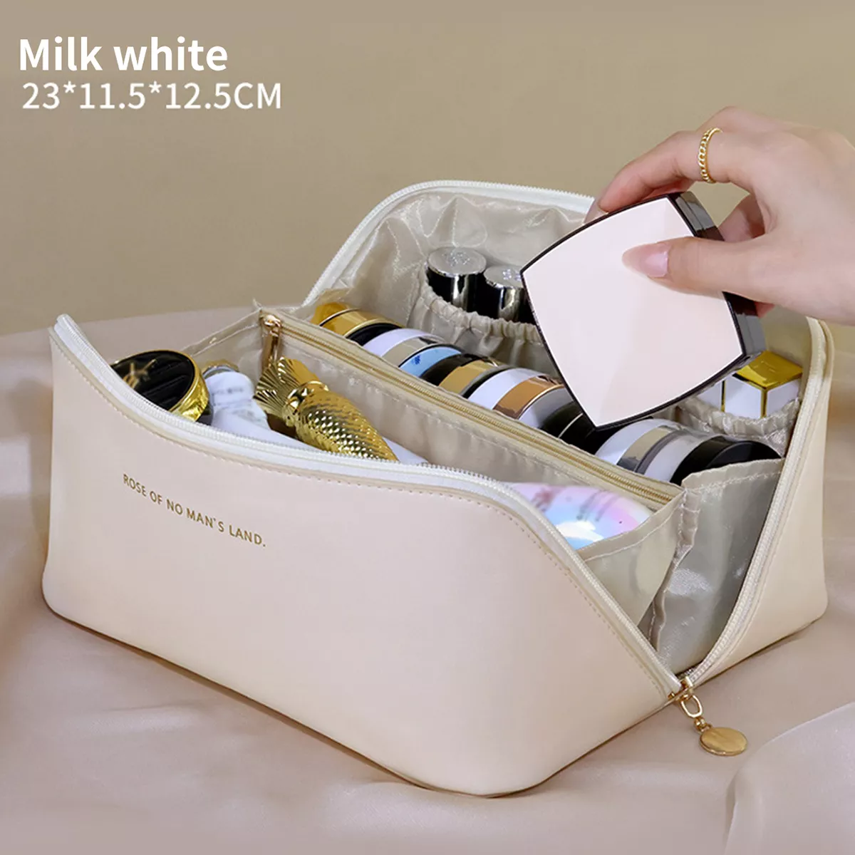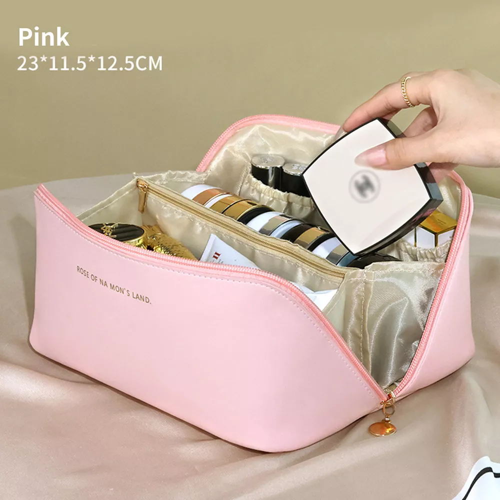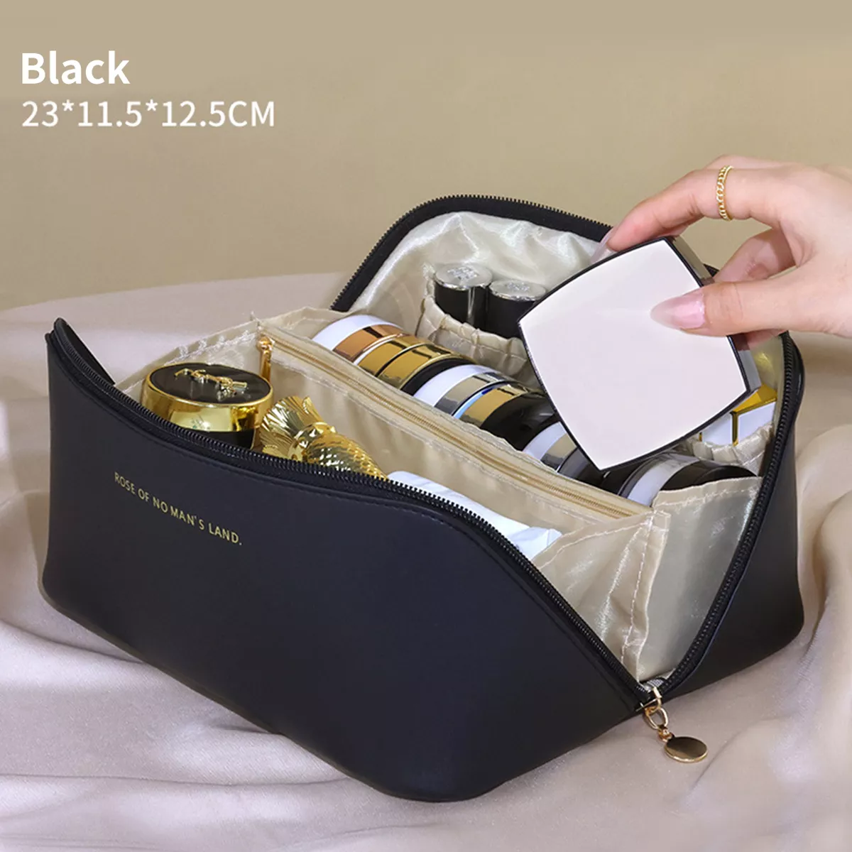 Large Capacity PU Leather Makeup & Toiletry Travel Bag – Stylish & Portable