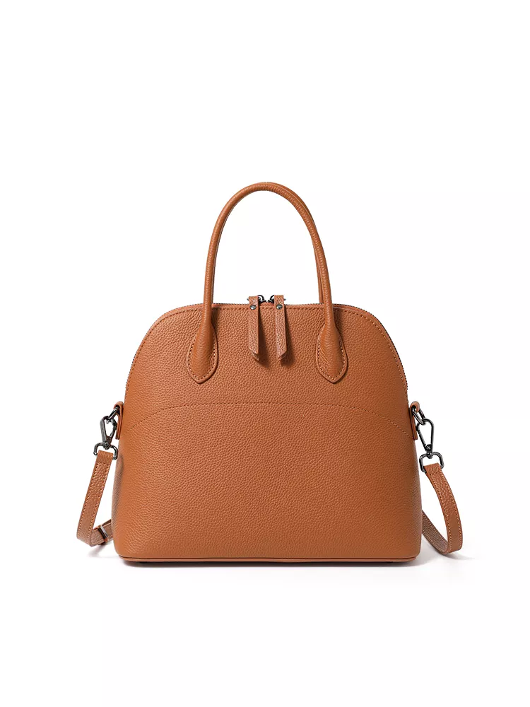 Elevate your style with this stunning Leather Dome Satchel, designed for women who appreciate the perfect balance of sophistication and functionality. Crafted from high-quality genuine leather and lined with smooth polyester, it offers both durability and a polished finish that complements any outfit. Its classic shell-shaped silhouette exudes charm, while the convertible strap adds versatility to suit your lifestyle. Whether carried by the top handles for a refined look or worn crossbody for hands-free convenience, this satchel transitions effortlessly from day to night.