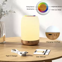 Transform your space with this LED Touch Table Lamp, featuring dimmable RGB colors, a wood-grain finish, and modern functionality. Perfect for bedrooms, kids’ rooms, or as a stylish decor accent, this lamp creates a soothing ambiance while offering practical features like a rechargeable battery, touch control, and a timer function. Its compact and elegant design makes it a versatile addition to any home or workspace.
