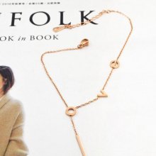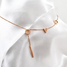 This stainless steel anklet has a pretty rose gold tone. The letter “L” is hanging, letters “O”, “V” and “E” are a part of the chain. Length: 7.9 in. + 2 in.