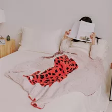 Featuring a chic and playful leopard pattern in vibrant red or yellow, this throw blanket adds a touch of elegance and personality to your space. Its jacquard weave ensures lasting quality, while the anti-pilling and wearable design makes it both practical and stylish. Sized at 51 x 63 inches, it’s the ideal blend of portability and coverage.