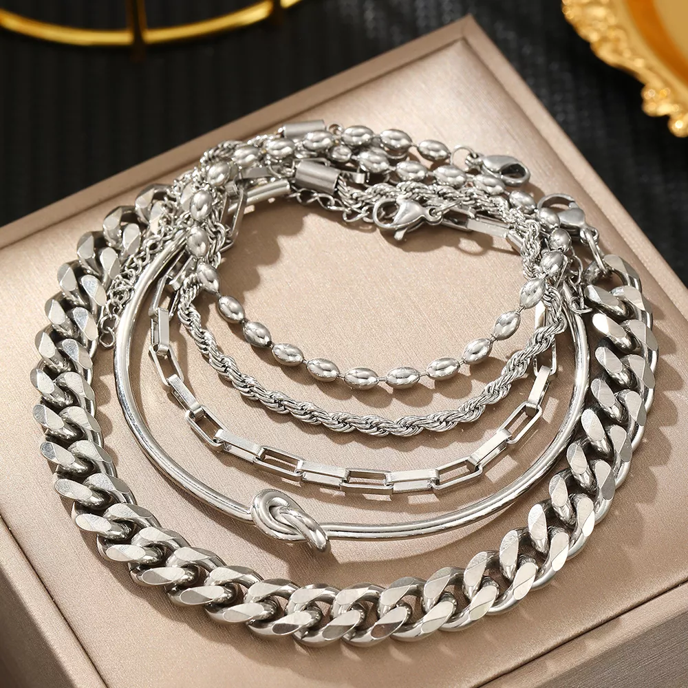 Elevate your accessory game with this stunning multi-layer stacked stainless steel bracelet. Designed for those who appreciate vintage charm mixed with modern flair, this bracelet effortlessly combines elegance and creativity. Its layered look adds depth and style, making it a standout piece for any jewelry collection.