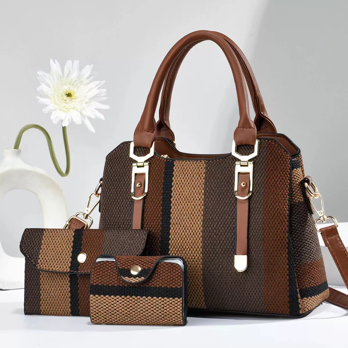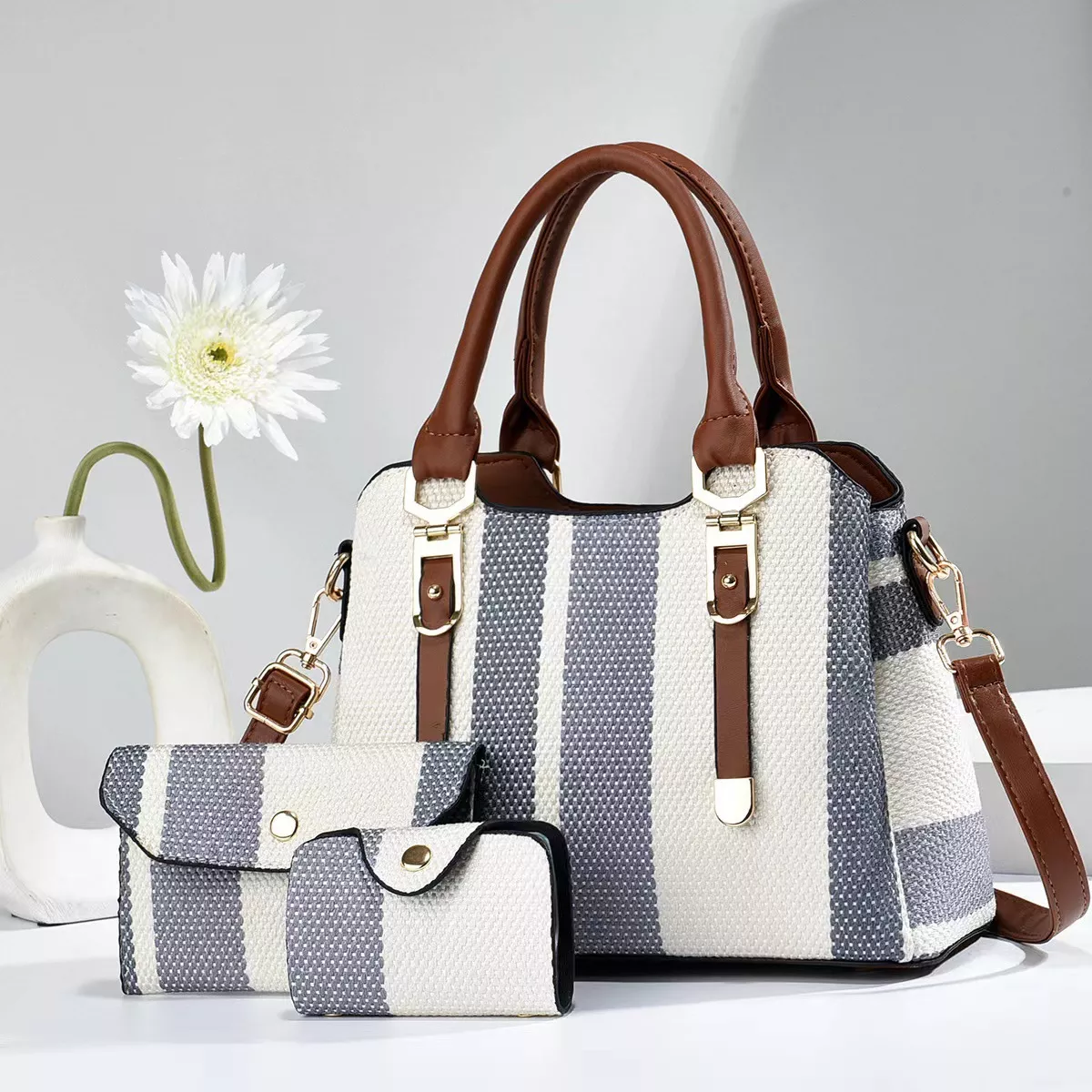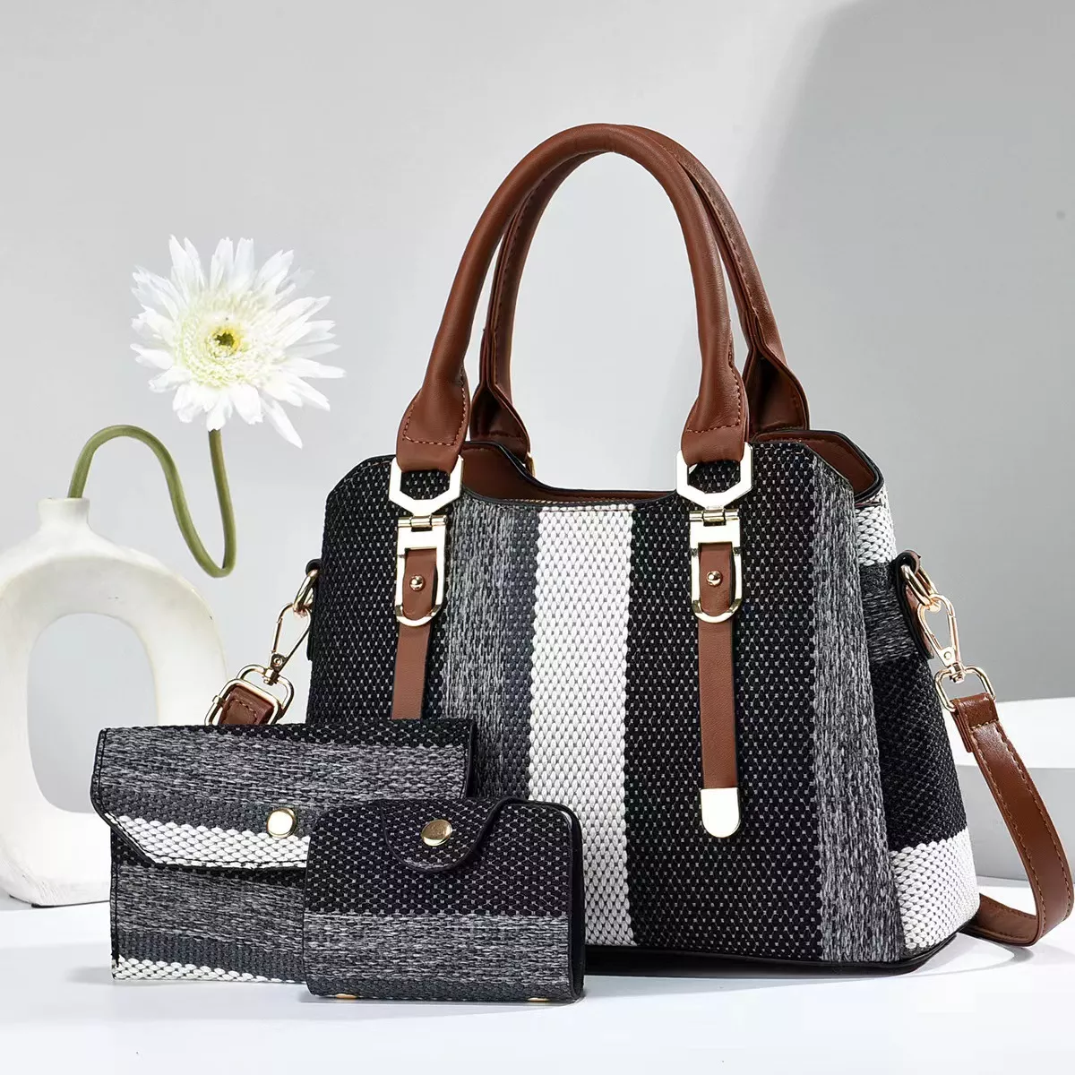 Step into timeless sophistication with this Luxury Striped Women’s Tote & Wallet Set. Designed for the modern woman, this versatile handbag combines a fashionable striped patchwork exterior with functional storage, making it the perfect companion for work, shopping, travel, or casual outings. Its chic design elevates any outfit, while the coordinated wallet ensures you stay organized and stylish wherever you go.