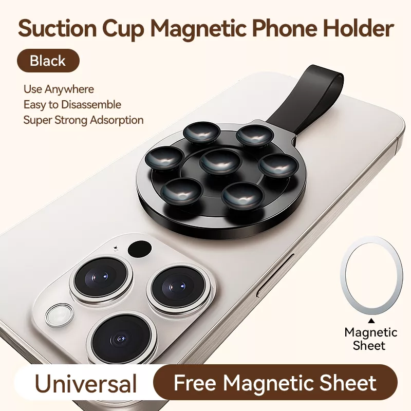 Experience ultimate convenience with this magnetic suction cup phone holder. Combining powerful N52 magnets and multiple individual suction cups, it securely holds your phone on any clean, smooth surface, including mirrors, glass, tiles, and computer screens. Ideal for hands-free video calls, movie watching, or content creation, this mount eliminates the need for bulky tripods and keeps your phone accessible anytime, anywhere.