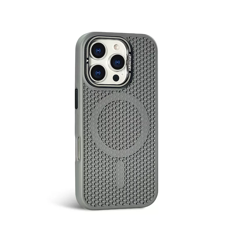This case is built with a magnetic MagSafe system that supports seamless wireless charging, so you can power up without removing anything. The built-in camera lens holder and raised protection ring keep your lens safe from dust, drops, and scratches, making it ideal for photo lovers who want extra security. A mesh heat-dissipating back ensures better airflow, helping your phone stay cooler during long use, gaming, or streaming. The lightweight, half-wrapped design offers a non-slip grip and an effortless feel in the hand, making it perfect for daily use.